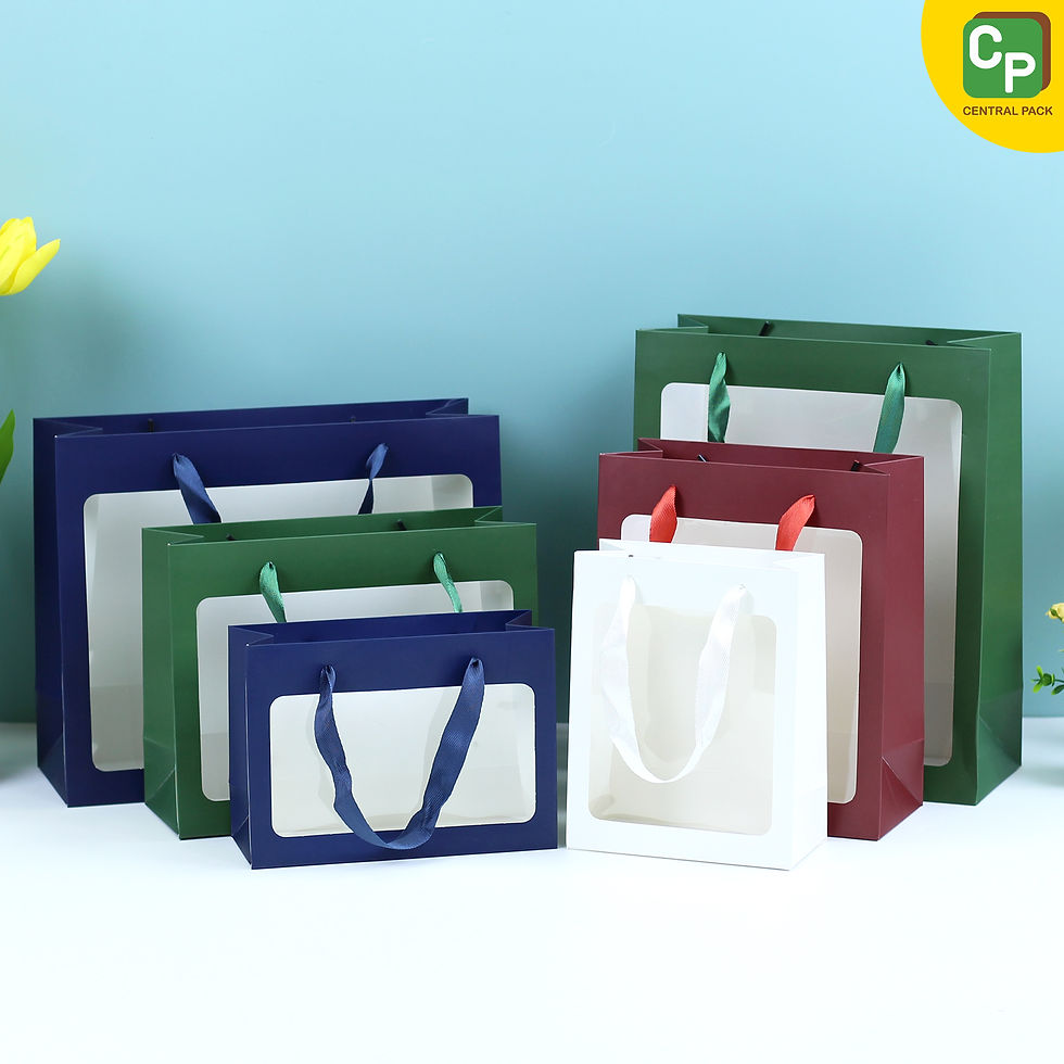 ถุงกระดาษอาร์ตด้าน เชือกแบน มีหน้าต่าง (แนวนอน/แนวตั้ง)